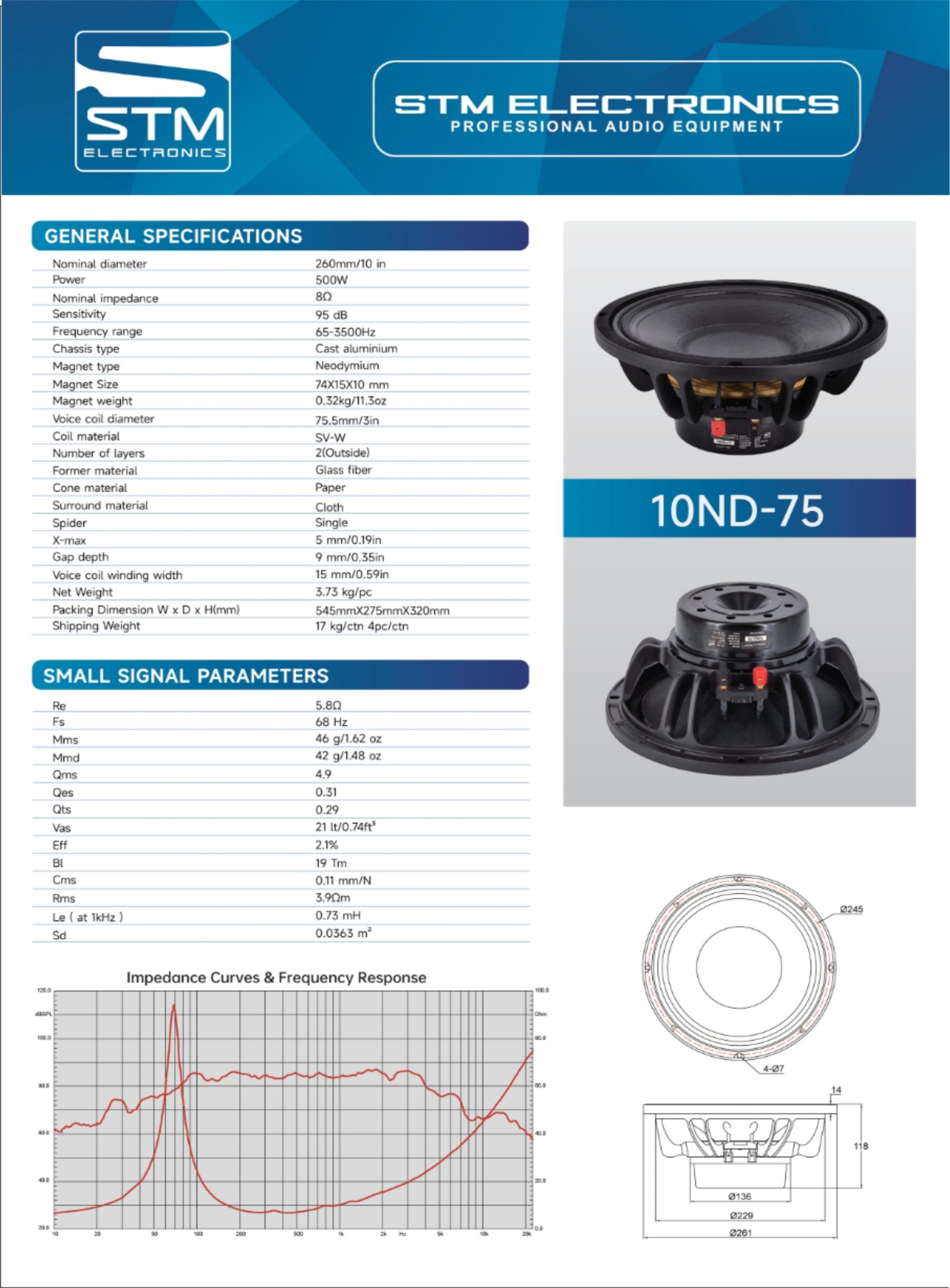 STM ELECTRONICS N751 Drivers HF Neodimio menbrana de 3 pulgadas